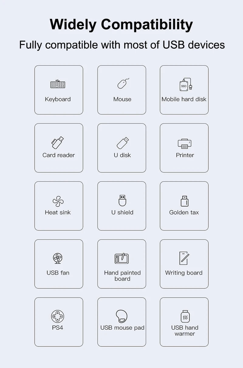 Wide Compatibility – Works with laptops, PCs, MacBook, tablets, and most USB devices including printers, game consoles, fans, and more.